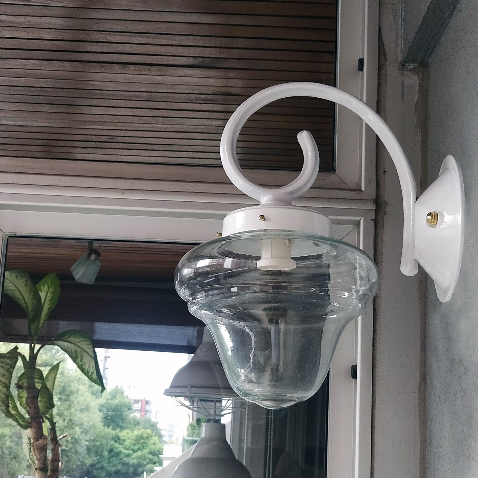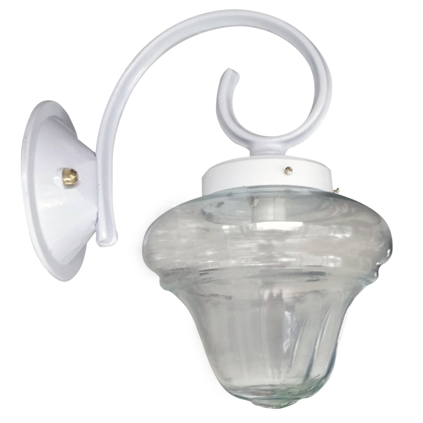 Farol Ménsula Colonial Fundición Aluminio y Vidrio Trompo 2 Transparente 10×20 – Apto Led (E27) – Colores: Blanco, Negro.