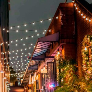 Guirnalda Tipo Kermesse 10 Metros con 20 Portalámparas y 20 Lámparas Incandescentes con Chicote de Conexión – Apta Led (E27) – Colores: Negro, Blanco.