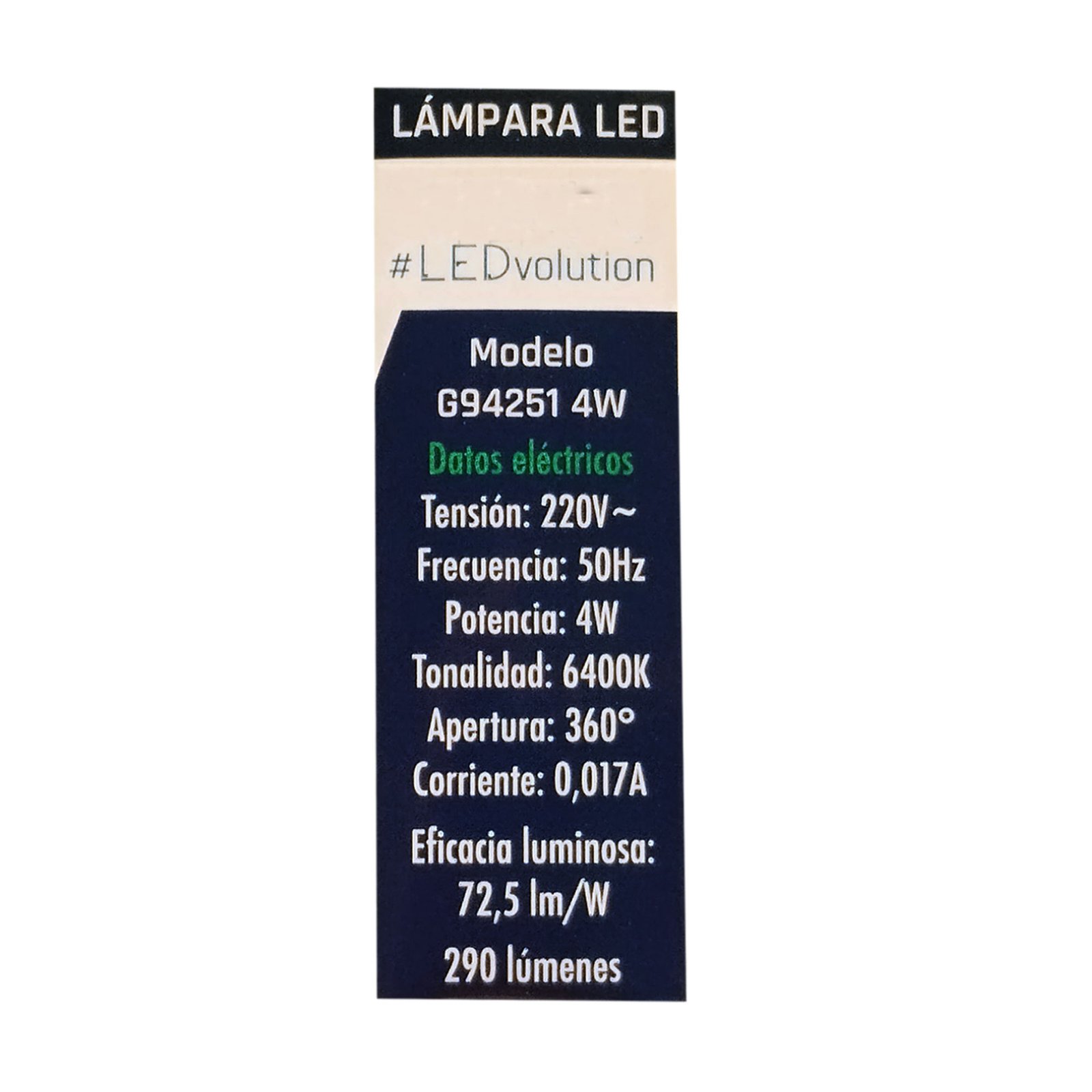 – Potencia: 4W (Fría) – 4.5W (Cálida)