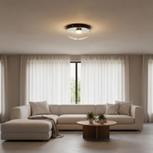 Plafón Chapa Chico (15) 1 Luz Vidrio Boina Transparente Apto Led – E27 – Blanco, Negro.