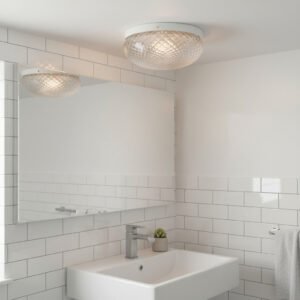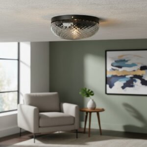 Plafón Chapa Grade (20) 2 Luces Vidrio Boina Transparente Apto Led – E27 – Blanco, Negro.