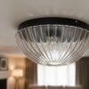 Plafón Chapa Grande (20) 2 Luces  Vidrio Estrella Transparente Apto Led – E27 – Blanco, Negro.