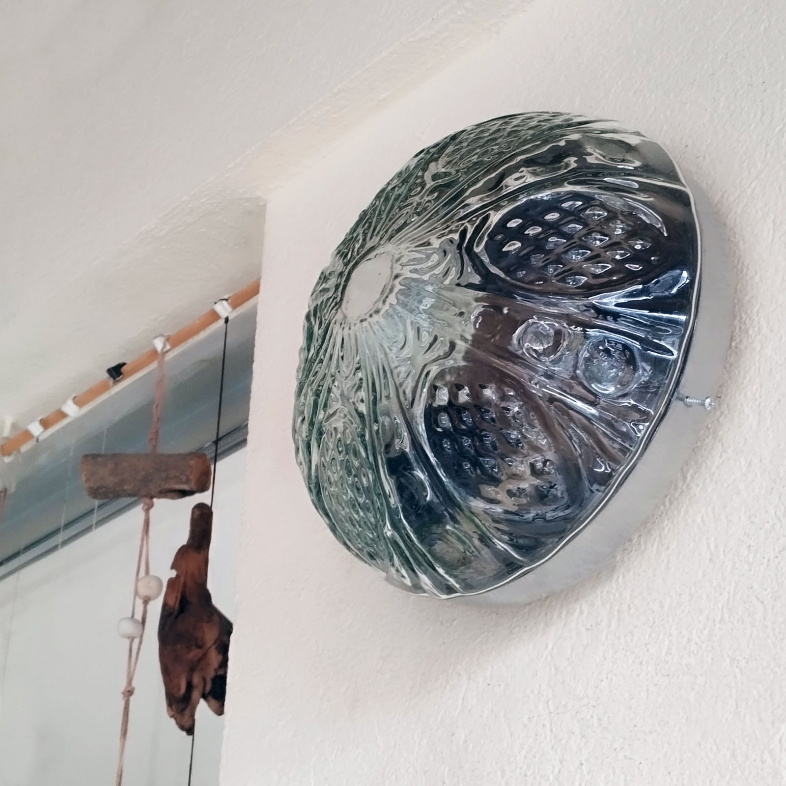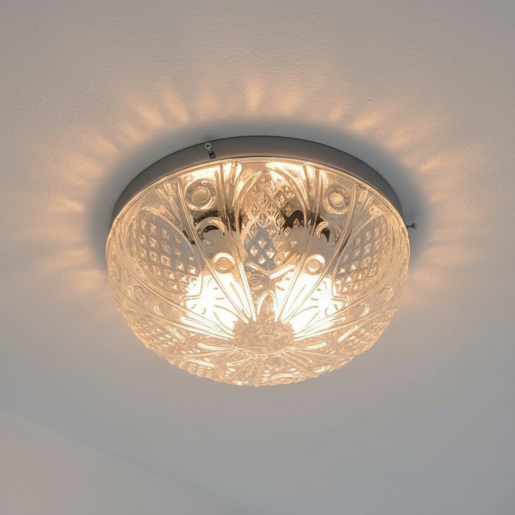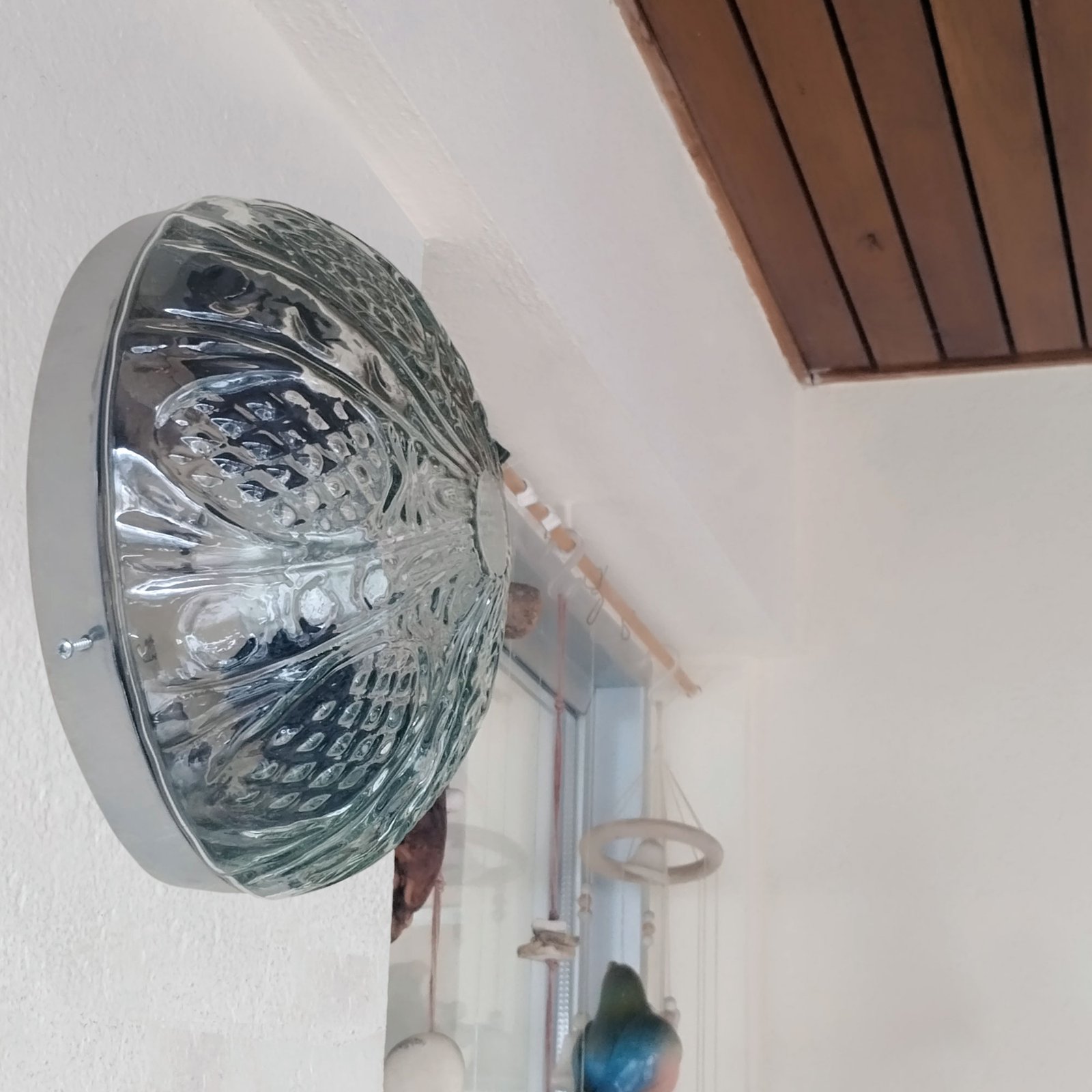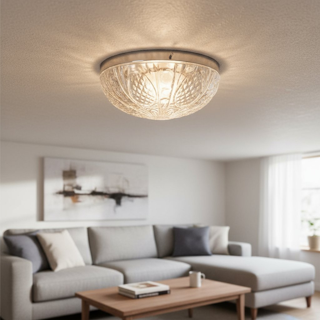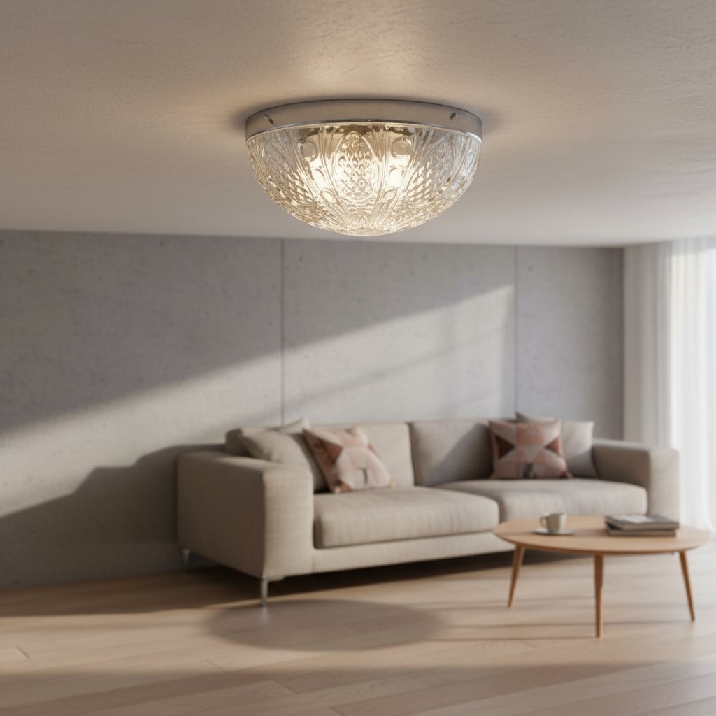 Plafón Chapa Grande (20) 2 Luces Vidrio Ananá Transparente – Apto Led – E27 – Cromado