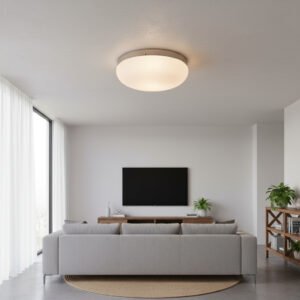 Plafón Chapa Grande (20) 2 Luces Vidrio Boina Satinado – Apto Led – E27 – Cromado