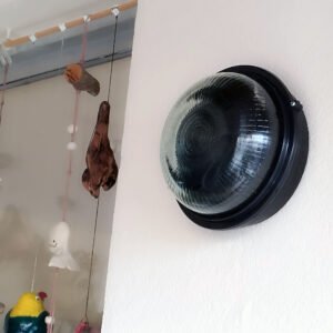 Plafón Plástico Redondo Carcasa Vidrio Transpafrente – Apto Led (E27) – Colores: Blanco, Negro.