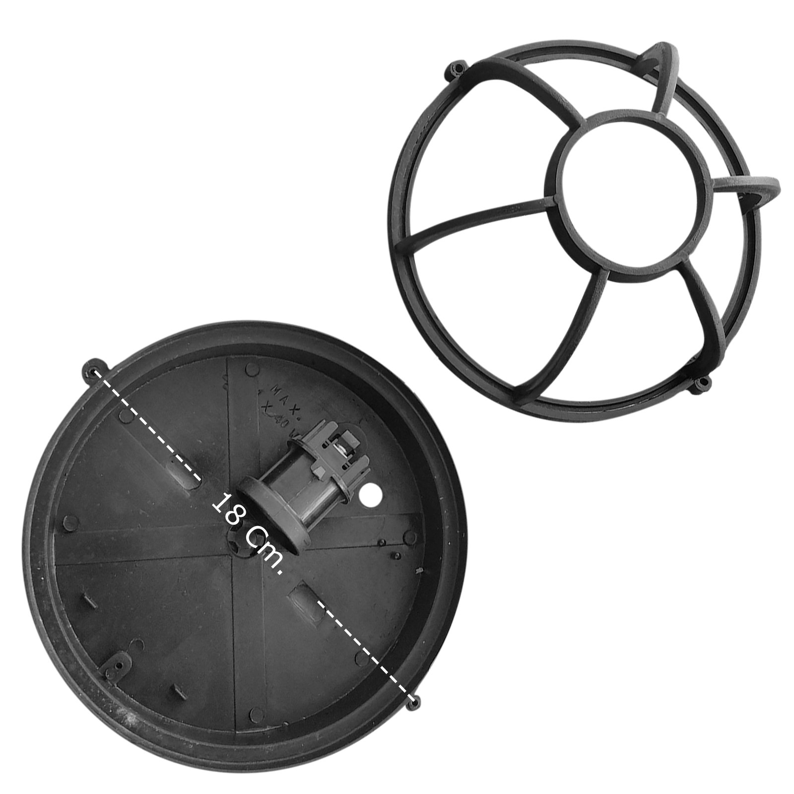 Diámetro: 18 Cm. – Alto Total: 10 Cm. – Alto de la Base: 4 Cm.